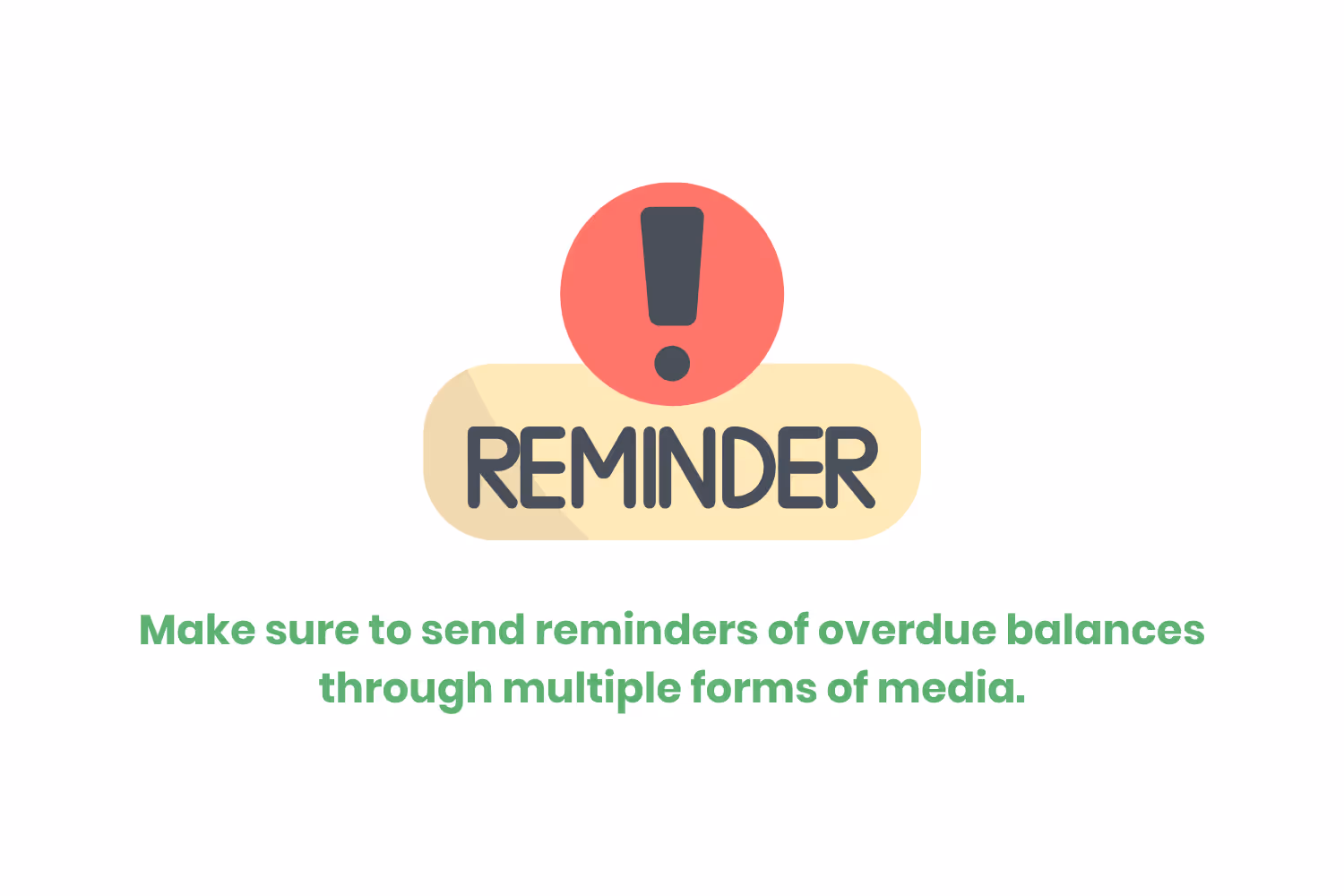 Make sure to send reminders of overdue balances through multiple forms of media.