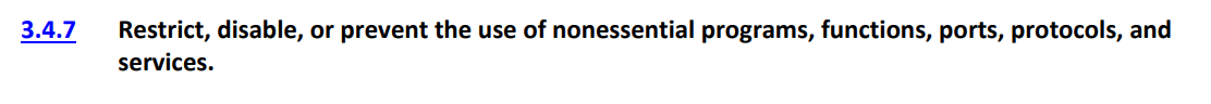 There are 42 controls with a score of 5 points.  Failure to put in place these security requirements poses a high risk of exfiltration of DoD CUI. It is also likely that these will not be eligible for POA&M under CMMC 2.0. These controls include: