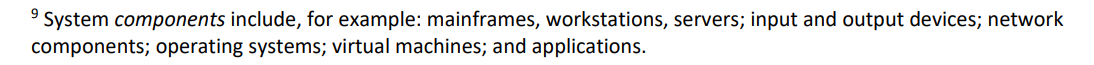 SP 800-171 lists computers, operating systems, and applications as examples of information systems. The definition of assessment objects also incorporates activities, individuals and physical facilities. Scope refers to not only assets (technology, people and facilities) but activities and processes as well.