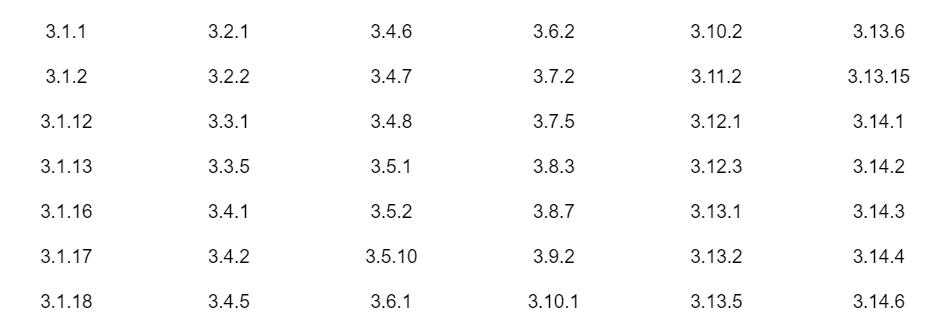 Original Rev 4 NFO ControlNew Control in Rev5Mapping to NIST 800-171CA-3(5)SC-7(5)3.13.6CM-2(1)CM-23.4.1 & 3.4.2CM-8(5)CM-83.4.1 & 3.4.2MA-4(2)MA-43.7.5PL-2(3)PL-23.12.1, 3.12.2, 3.12.3 & 3.12.4RA-5(1)RA-53.11.2 & 3.11.3