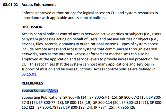 The SP 800-171 Rev 3 publication identifies the underlying SP 800-53 Rev 5 control(s). This mapping only connects requirements to controls. We refined these references to map objectives from SP 800-171A Rev 3 to objectives within SP 800-53 Rev 5.