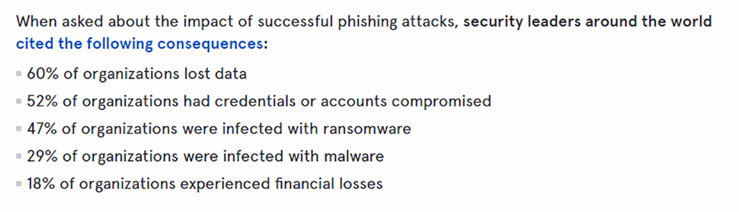 In 2020 alone, 75% of all organizations worldwide experienced a phishing attack. Unfortunately, many of these attempts are successful in stealing organizations’ data and have negative consequences for them.