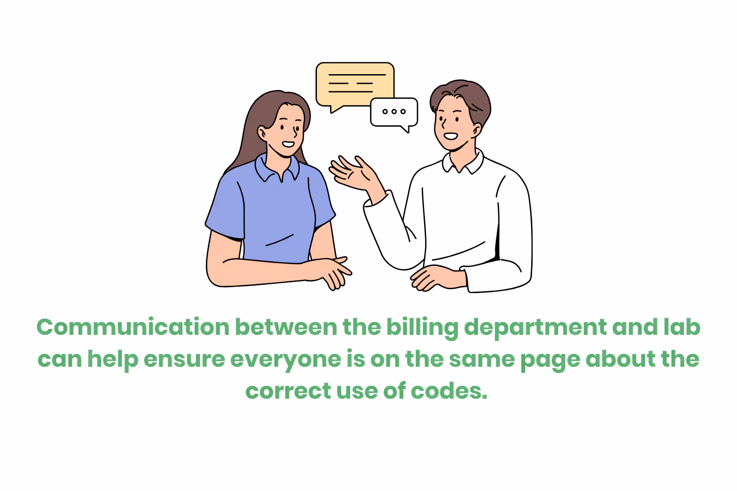Another way to avoid miscommunication is by improving the connection between the labs and the billing department. This will ensure that everyone is on the same page about what codes are active and which are correct to use for proprietary tests.