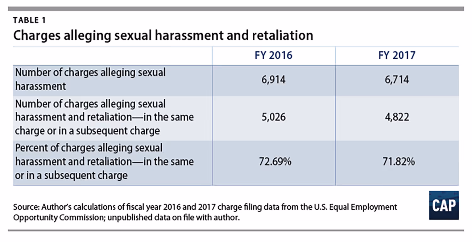 Shockingly, 71% of sexual harassment charges also included retaliation allegations. This means that the victim received some form of punishment when they brought the situation to their company’s attention.