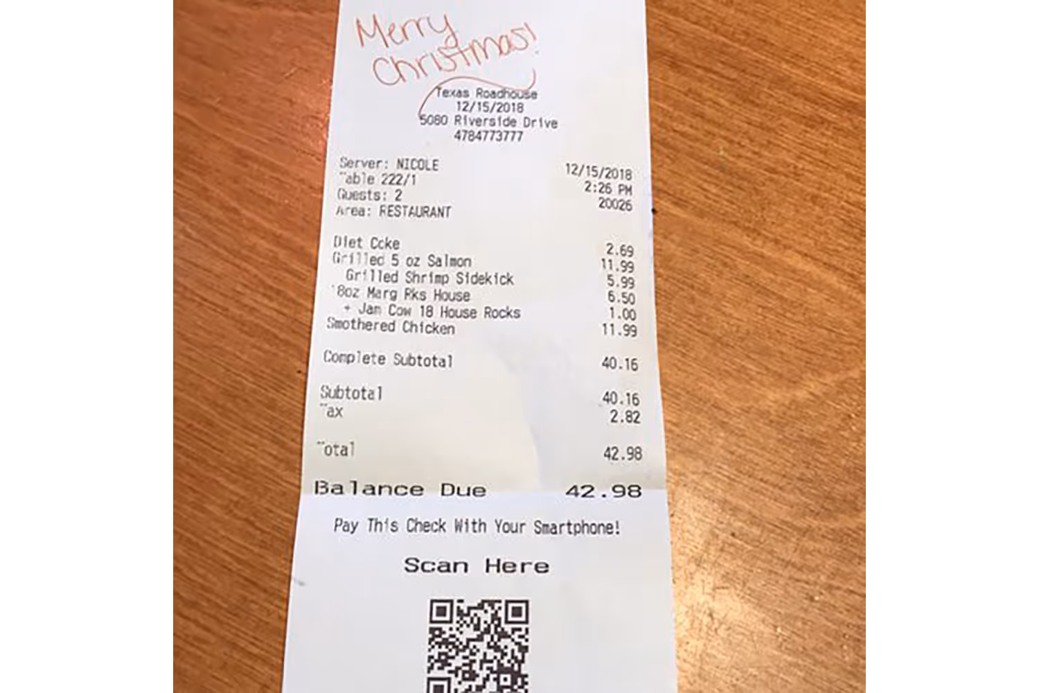 For example, Texas Roadhouse prints diners’ QR codes on the receipt. Instead of the customer leaving their credit card or cash for the server, they can scan the code to pay electronically. This takes them to an online receipt where they enter their payment details. It makes the process faster for both the business and the customer.