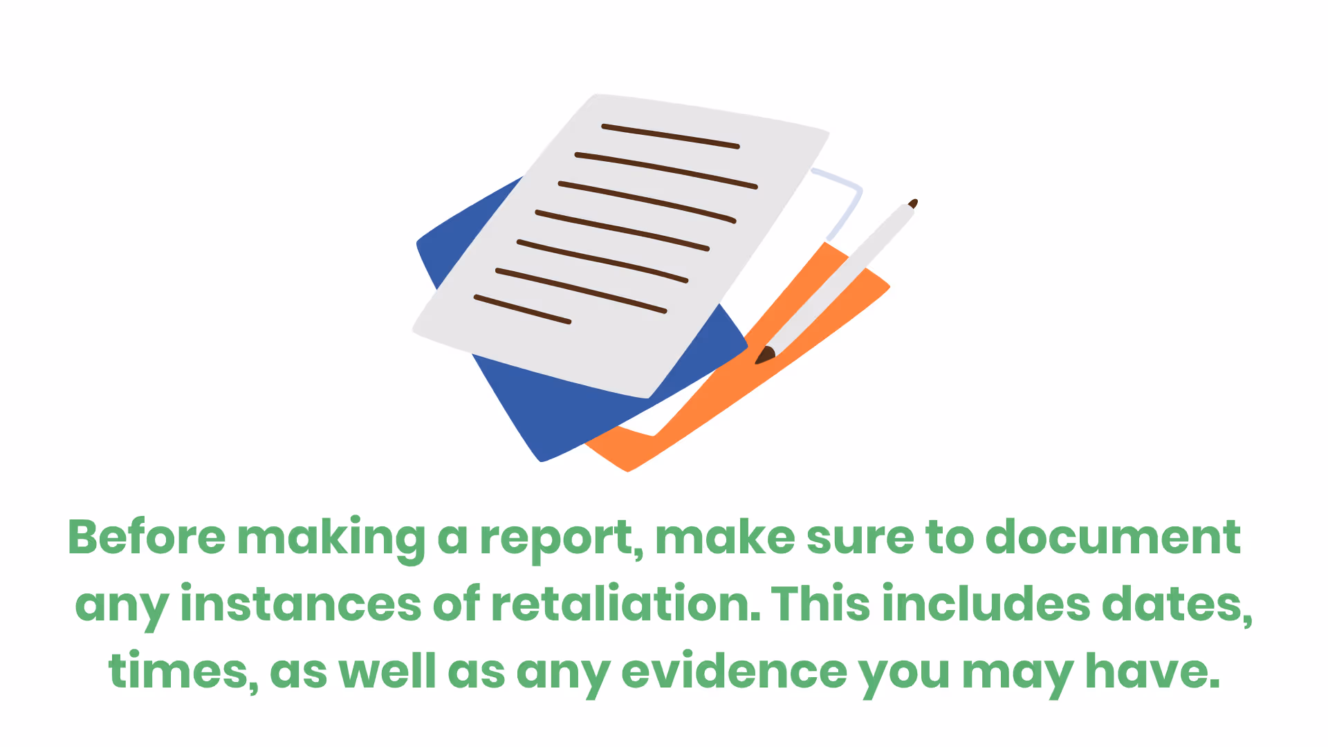 • Make sure to document everything. You want to be able to prove retaliation against you if need be.