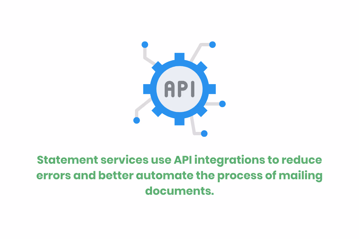 Statement services use API integrations to reduce errors and better automate the process of mailing documents. Data has a better chance of being accurate and complete.