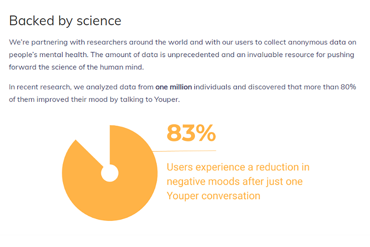 Youper is another “pocket therapist” with its AI capabilities. Over 80% of users improved their mood with only one conversation. While Youper can’t diagnose or treat, it supports people in caring for their emotional health. It can work alongside therapy or other treatments for users who already see a doctor or therapist. The app helps balance mindfulness and calms users so they can sleep better. It tracks mood and provides insights into a user’s personality.