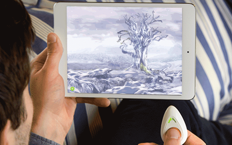 This influences activities within the app, and the user progresses through the activity as they relax. The app responds to changing stress levels to give audio and visual feedback.