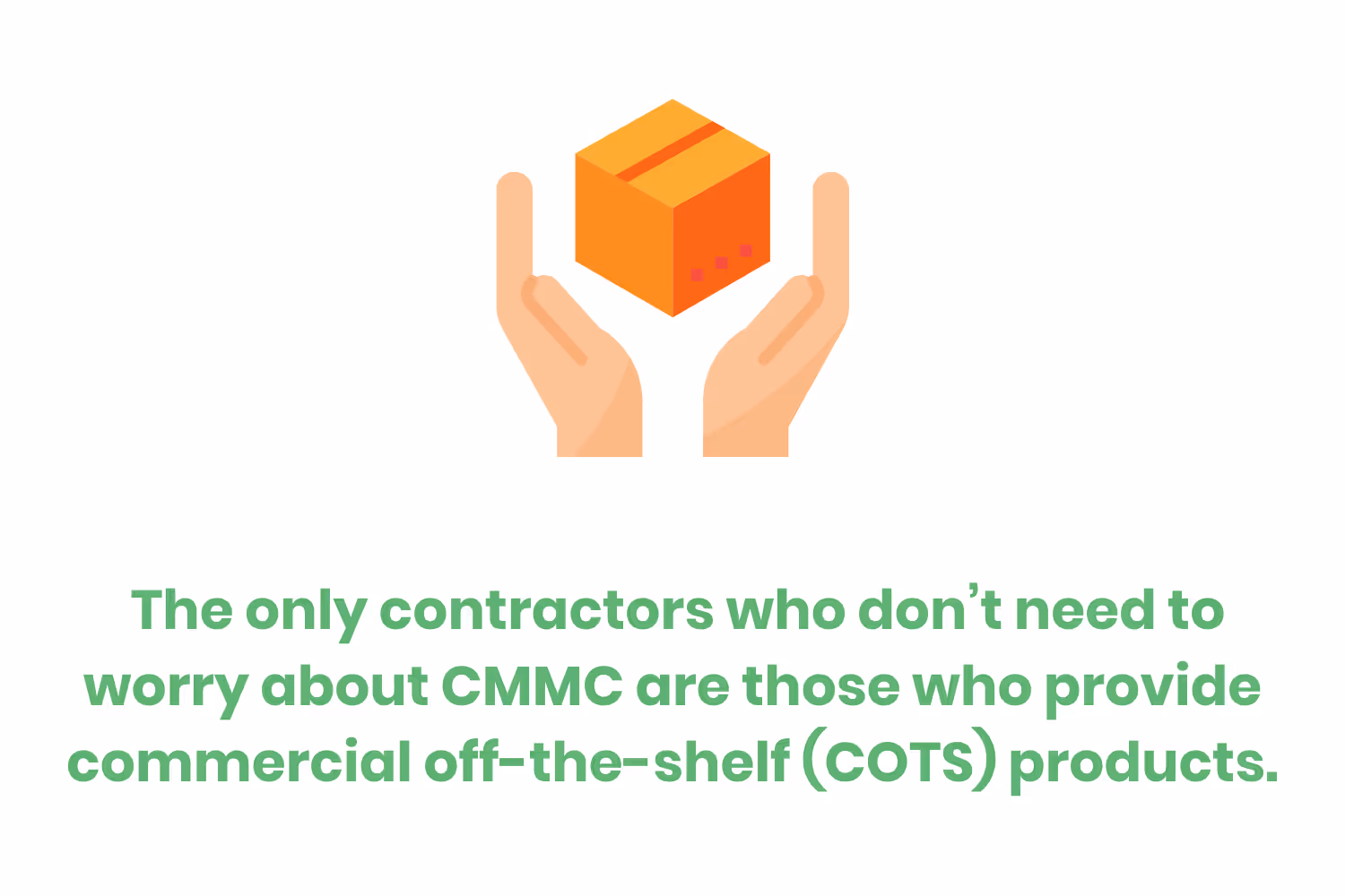 You see, the only contractors who don’t need to worry about CMMC are those who provide commercial off-the-shelf (COTS) products. In other words, these contractors don’t make any modifications to the products that they’re selling to the DoD. Civilians could purchase the same exact product that the COTS contractor provides to the government.