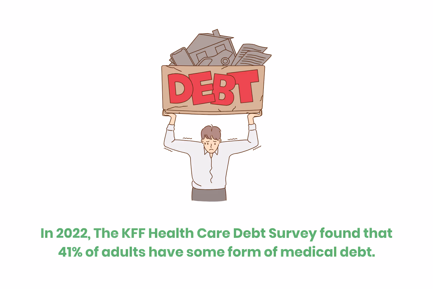 In 2022, The KFF Health Care Debt Survey found that 41% of adults have some form of medical debt.