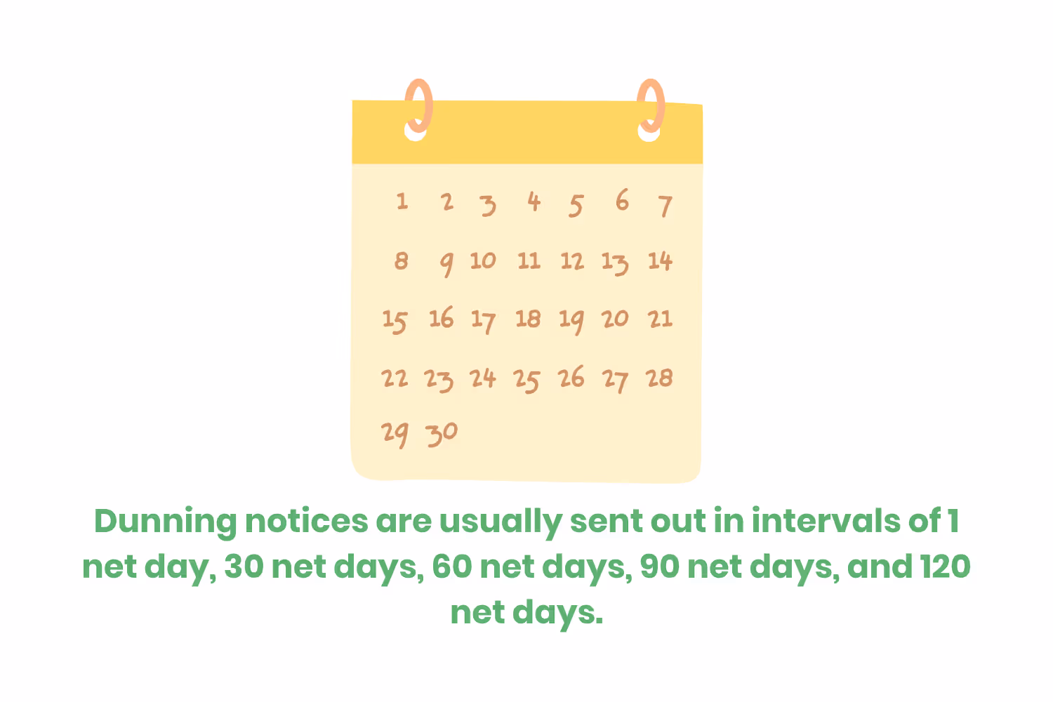 Now it’s time to send your dunning notice and any correlating payment notices. Typically, you will send these at scheduled intervals after the due date passes: 1 net day, 30 net days, 60 net days, 90 net days, and 120 net days. These messages will start as a gentle reminder, but as time goes on, they should become firmer in tone if the payment continues to be outstanding. Again, there are many different ways you can send these notices. You can deliver them via email, postal mail, or even automated AR systems.