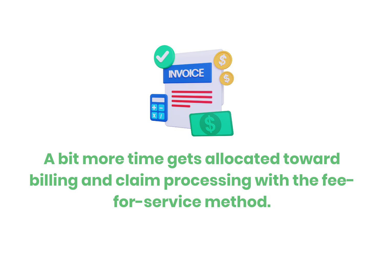 A bit more time gets allocated toward billing and claim processing with the fee-for-service method as well. This requires more resource allocation toward making sure your billing and claim processing works sufficiently. This can cause higher costs and lower efficiency within your practice.