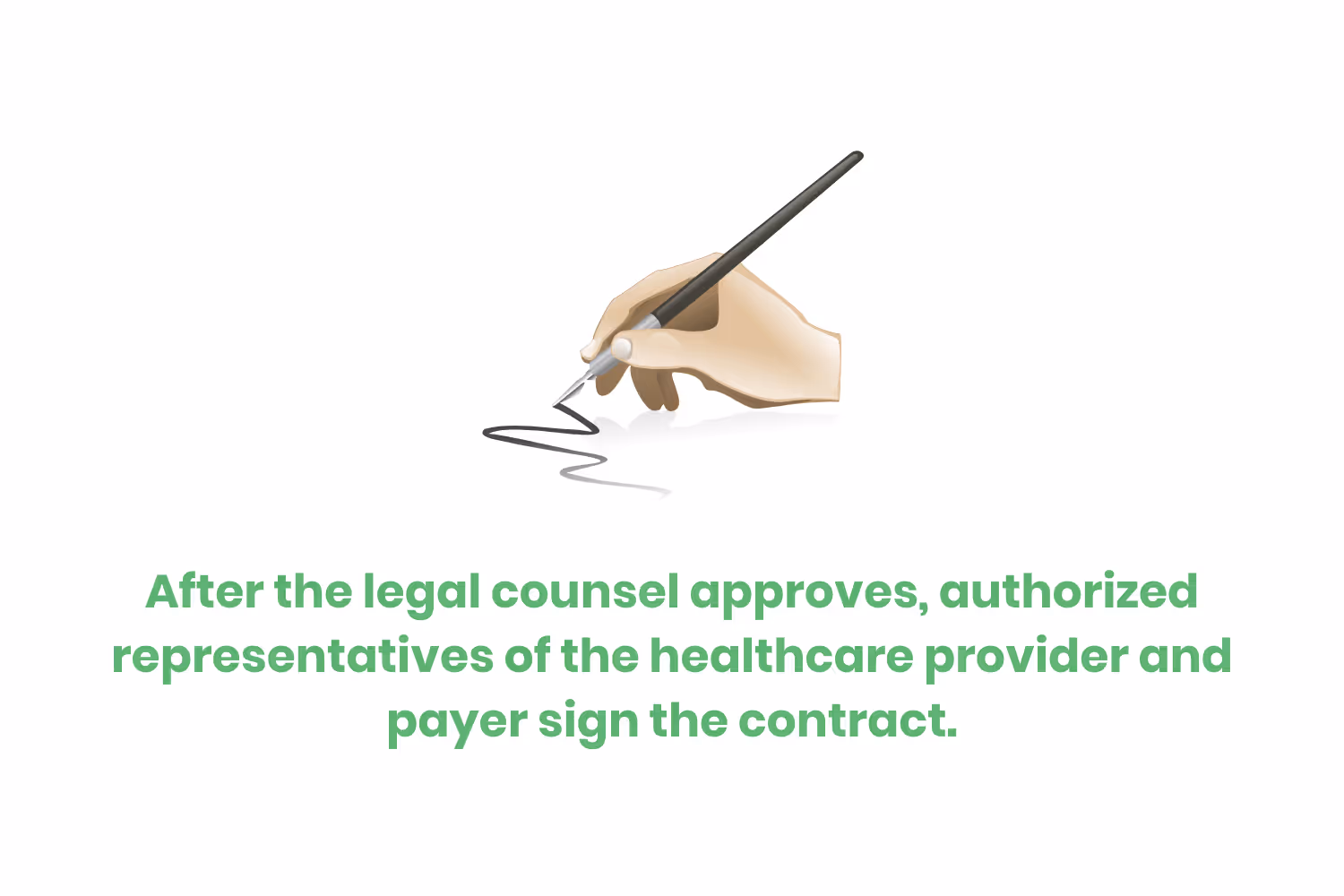 After the legal counsel approves, authorized representatives of the healthcare provider and payer sign the contract. An agreement is born and implemented. The provider begins to offer services within their payer agreement and then submits their claims to the payer.