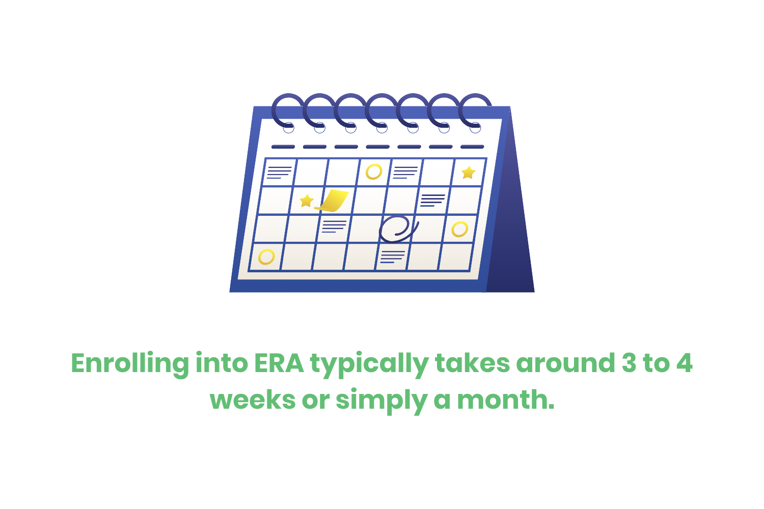 So if you want to receive an ERA, you must apply for it. Enrolling into ERA typically takes around 3 to 4 weeks or simply a month. During this time your payers make necessary changes to send your RA electronically.