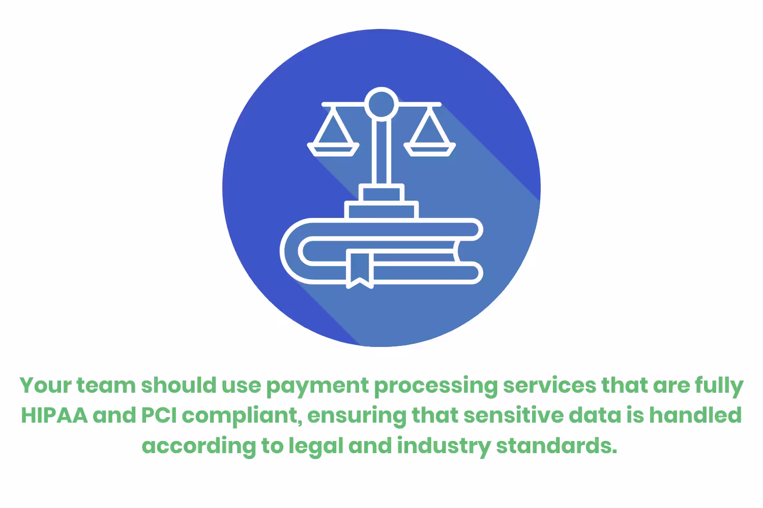 Paired with payment card industry data security (PCI DSS) standards, your payment systems ensure a secure environment for your practice.Before committing to a processor, ask the organization for evidence of both HIPAA and PCI compliance.
